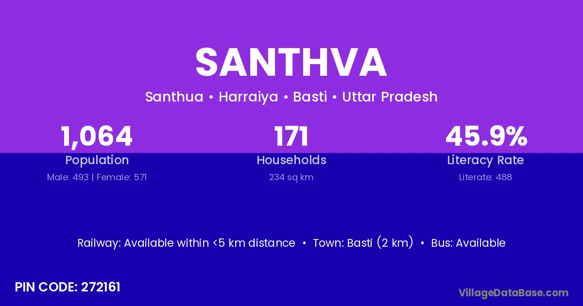 Basti (2 km) is the nearest town to Santhva village for major economic activities and is located approximately 2 km away.