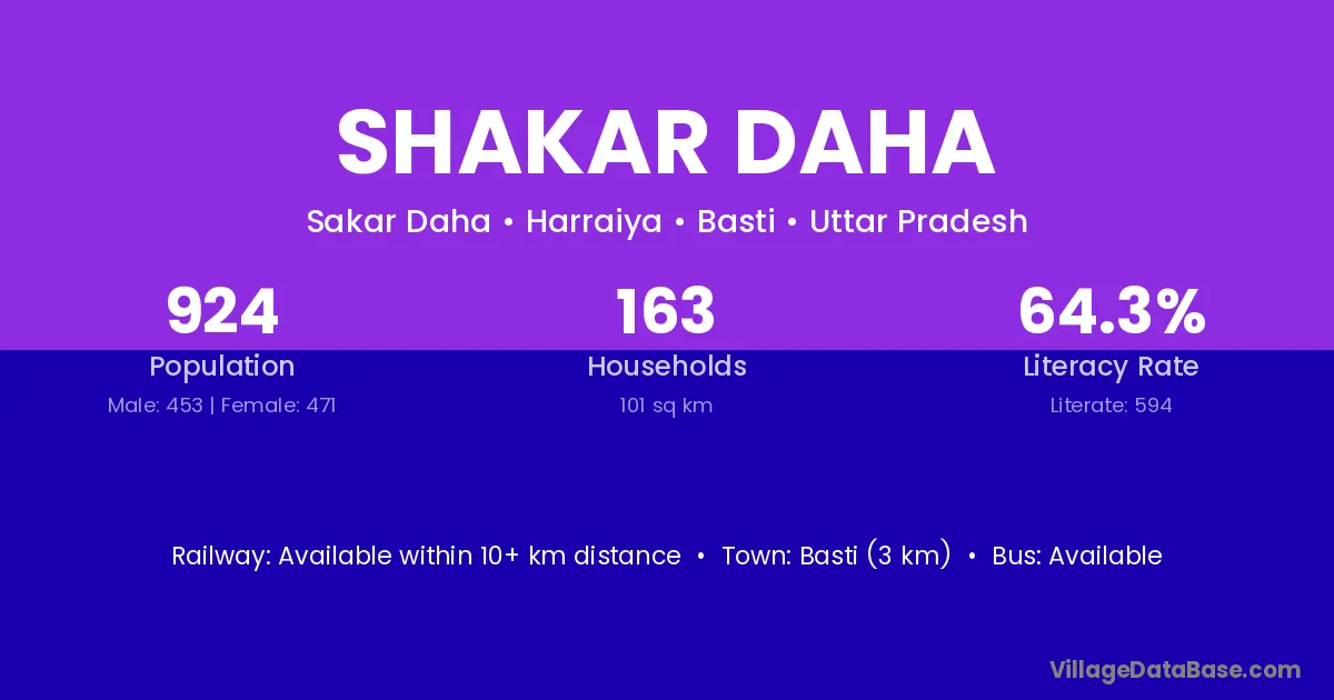 Basti (3 km) is the nearest town to Shakar Daha village for major economic activities and is located approximately 3 km away.