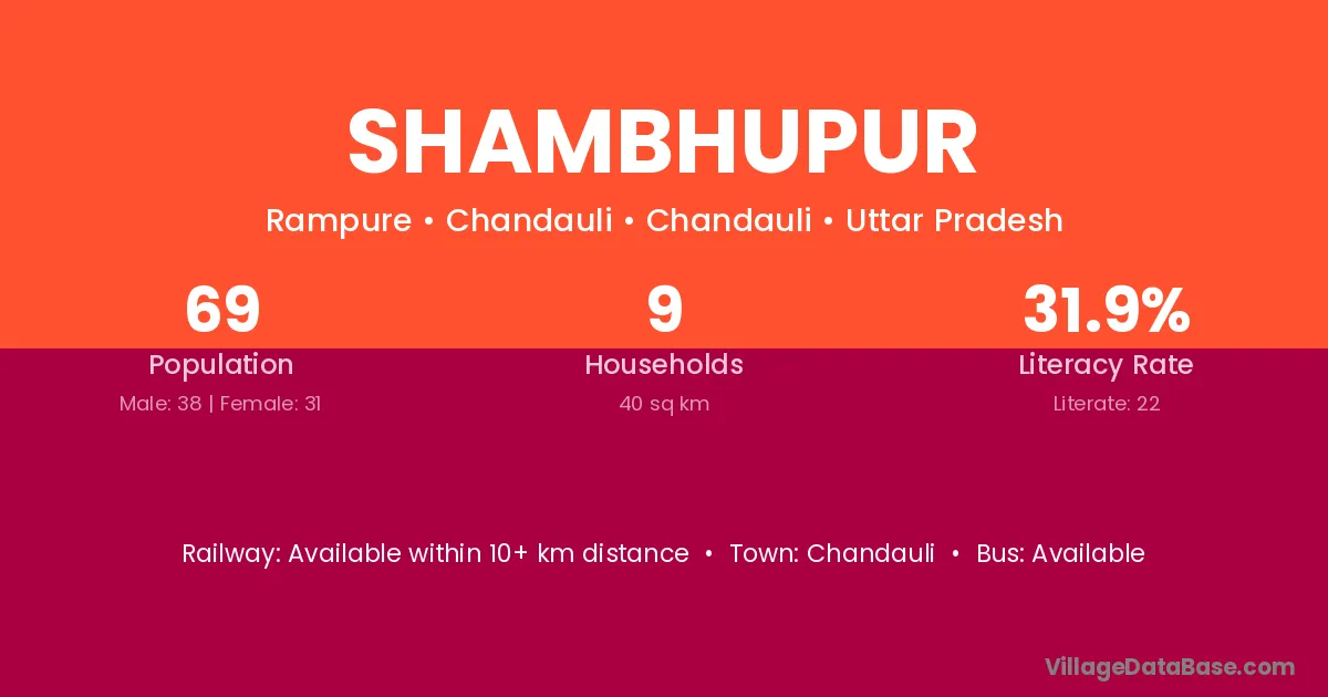 Basti (15 km) is the nearest town to Shambhupur village for major economic activities and is located approximately 15 km away.