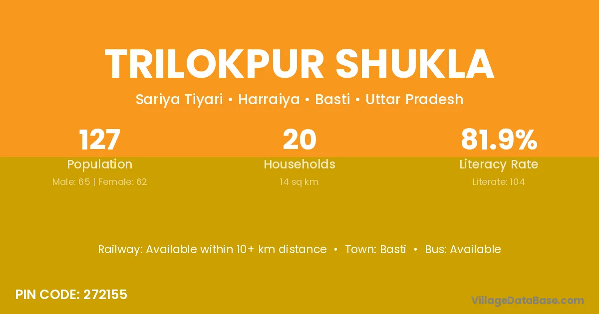 Trilokpur Shukla village has a total population of 127 people, of which 65 are males and 62 are females.