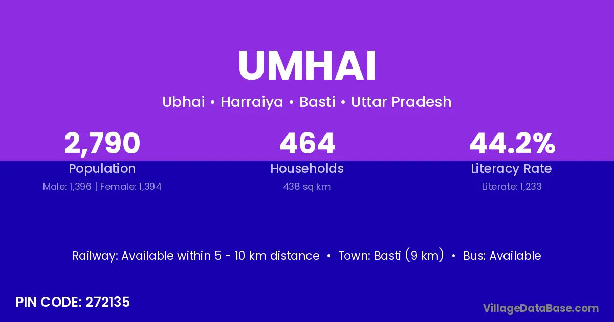 Basti (9 km) is the nearest town to Umhai village for major economic activities and is located approximately 9 km away.