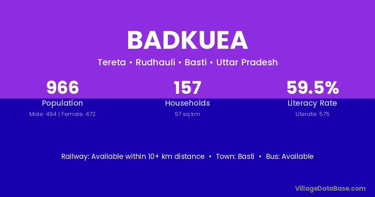 Basti is the nearest town to Badkuea village for major economic activities