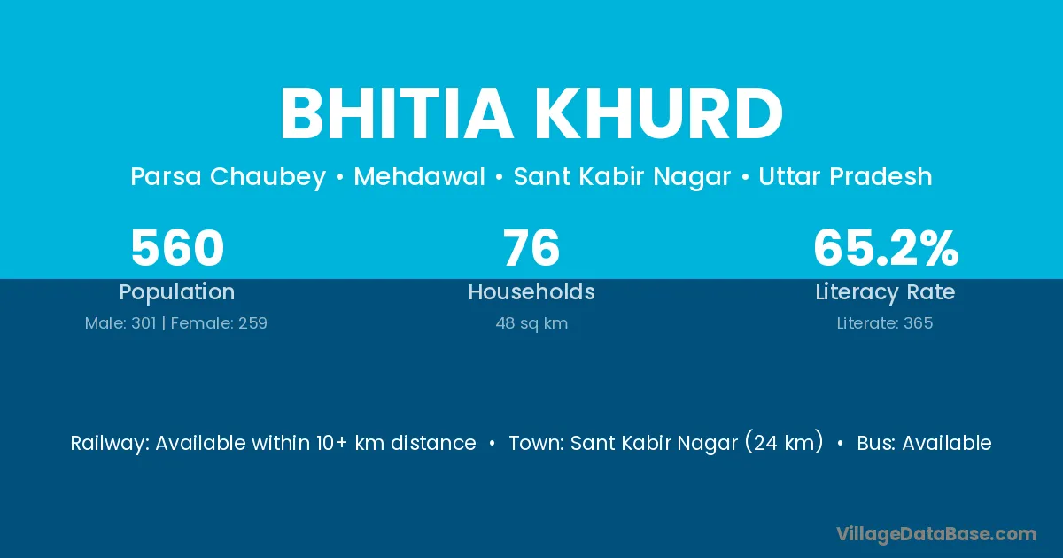 Basti is the nearest town to Bhitia Khurd village for major economic activities