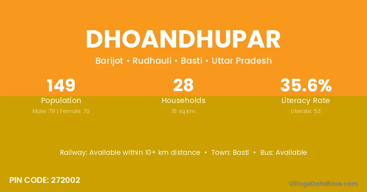 Basti is the nearest town to Dhoandhupar village for major economic activities