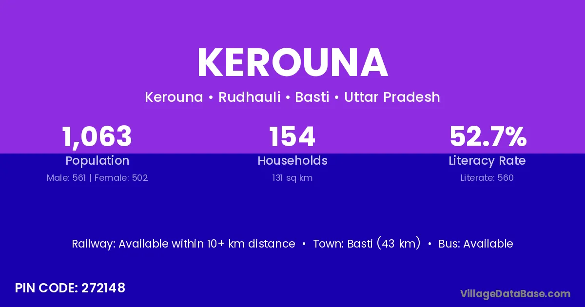 Kerouna village is located in the Rudhauli Tehsil of the Basti district in Uttar Pradesh .