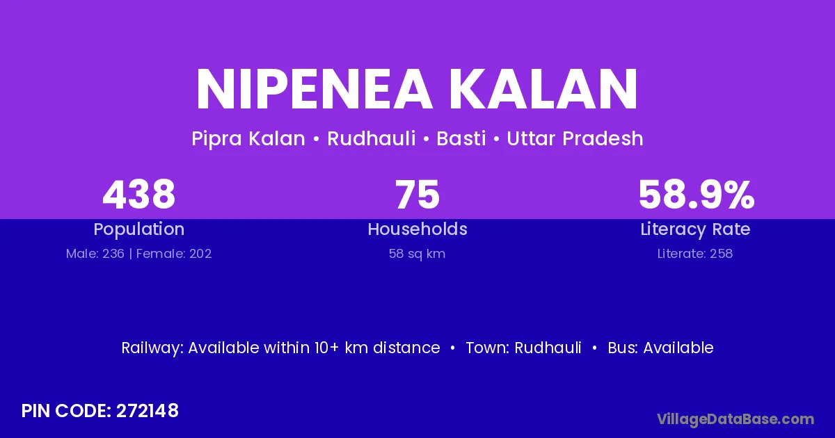 Rudhauli is the nearest town to Nipenea Kalan village for major economic activities