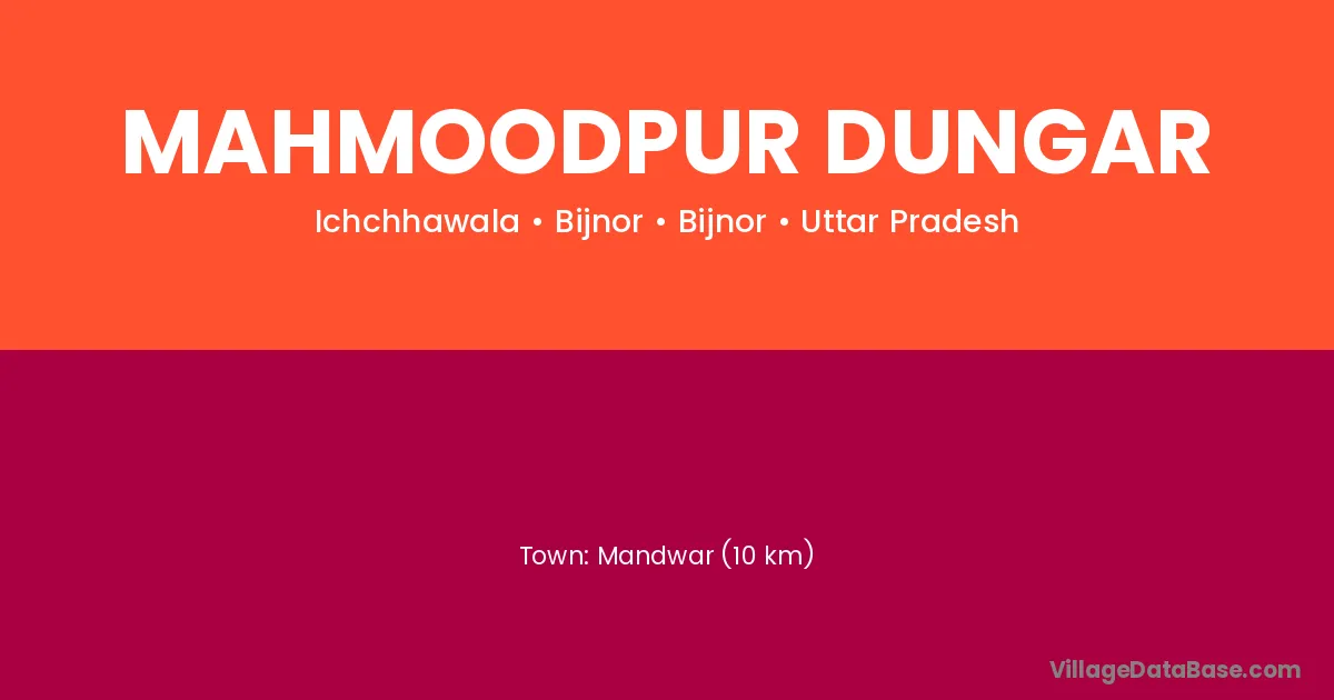 Mandwar (10 km) is the nearest town to Mahmoodpur Dungar village for major economic activities and is located approximately 10 km away.