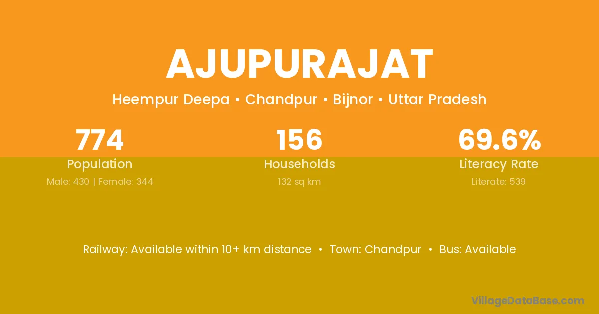 Ajupurajat village has a total population of 774 people, of which 430 are males and 344 are females.