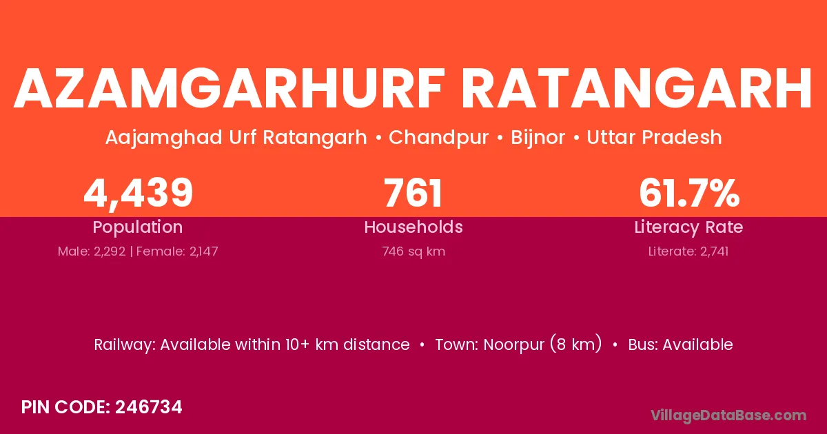 Noorpur (8 km) is the nearest town to Azamgarhurf Ratangarh village for major economic activities and is located approximately 8 km away.