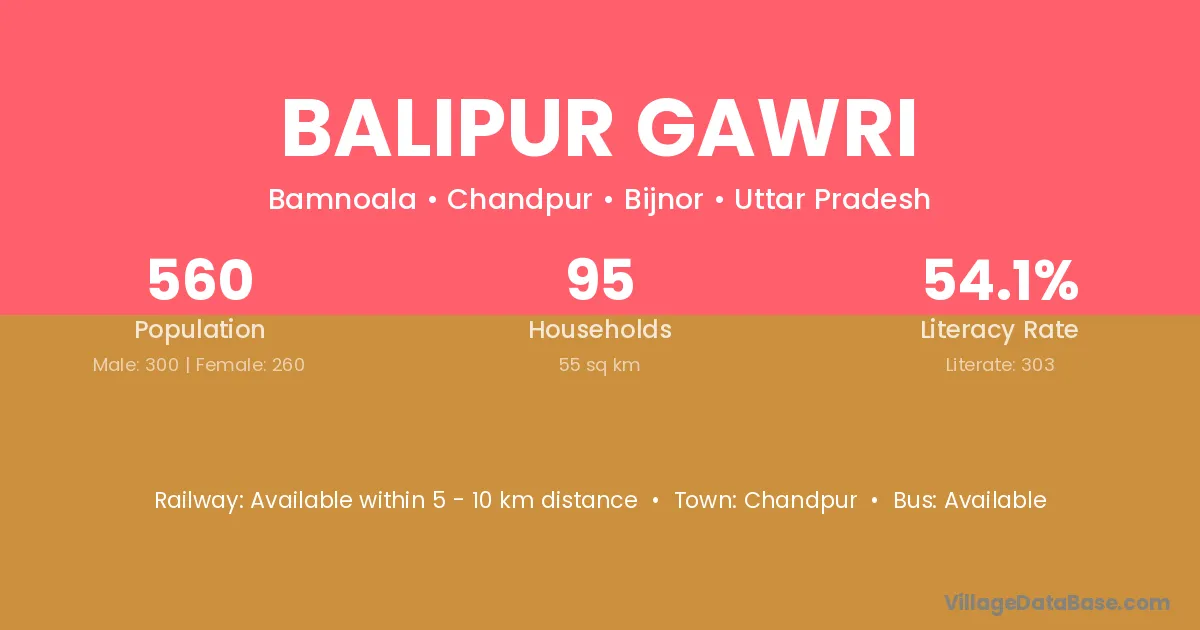 Balipur Gawri village has a total population of 560 people, of which 300 are males and 260 are females.