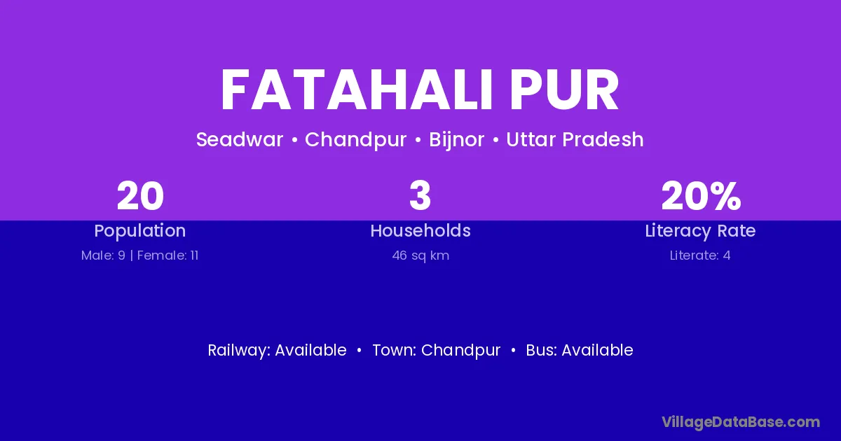 Fatahali Pur village has a total population of 20 people, of which 9 are males and 11 are females.