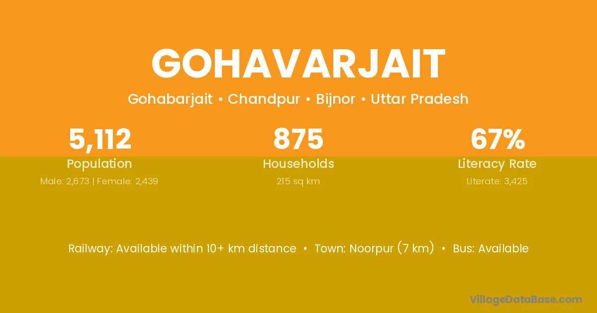 Noorpur (7 km) is the nearest town to Gohavarjait village for major economic activities and is located approximately 7 km away.