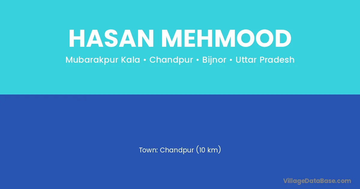 Chandpur (10 km) is the nearest town to Hasan Mehmood village for major economic activities and is located approximately 10 km away.
