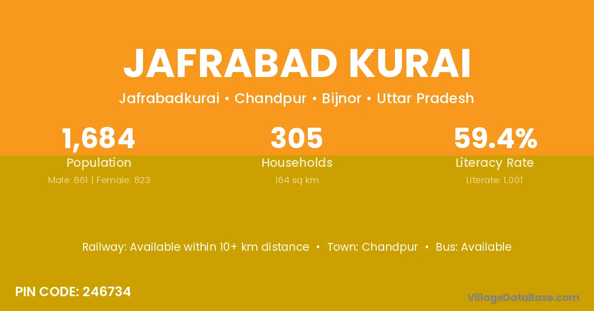 Jafrabad Kurai village has a total population of 1,684 people, of which 861 are males and 823 are females.