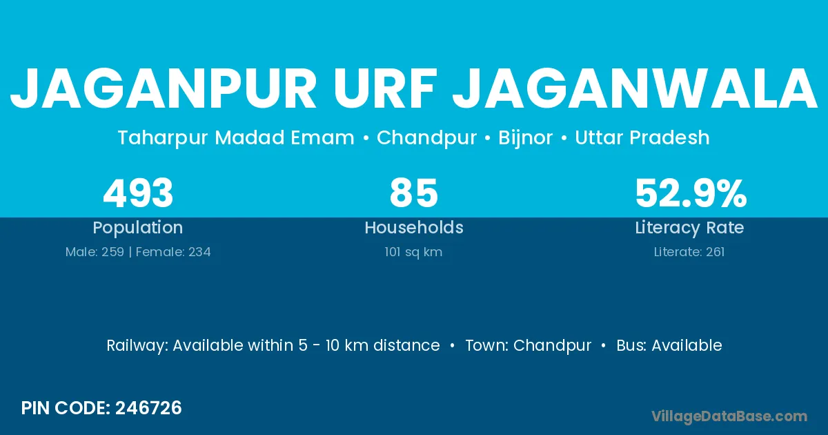 According to Census 2011 information, the village code of Jaganpur Urf Jaganwala village is 246726.