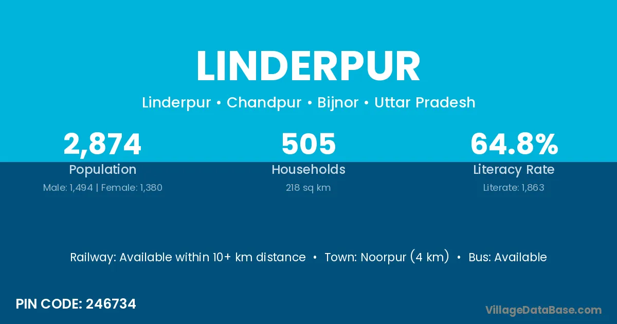 Noorpur (4 km) is the nearest town to Linderpur village for major economic activities and is located approximately 4 km away.