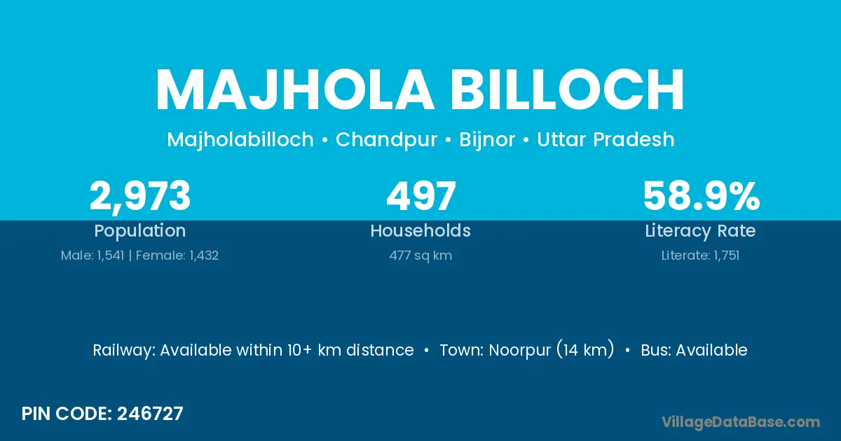 Majhola Billoch village has a total population of 2,973 people, of which 1,541 are males and 1,432 are females.