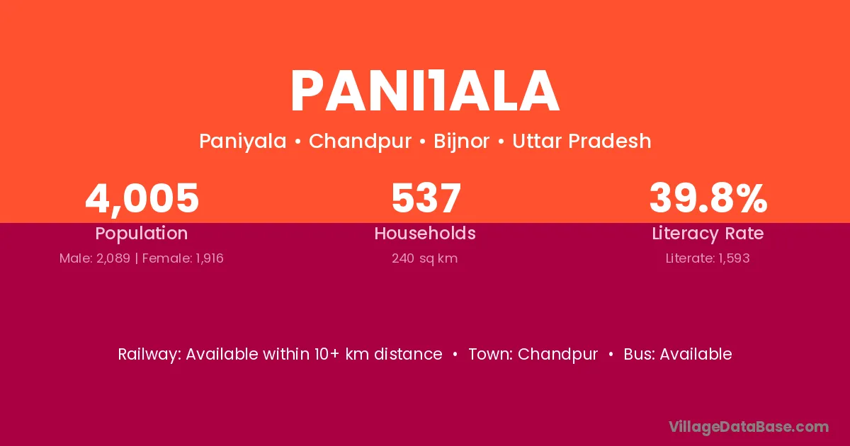 Pani1ala village has a total population of 4,005 people, of which 2,089 are males and 1,916 are females.