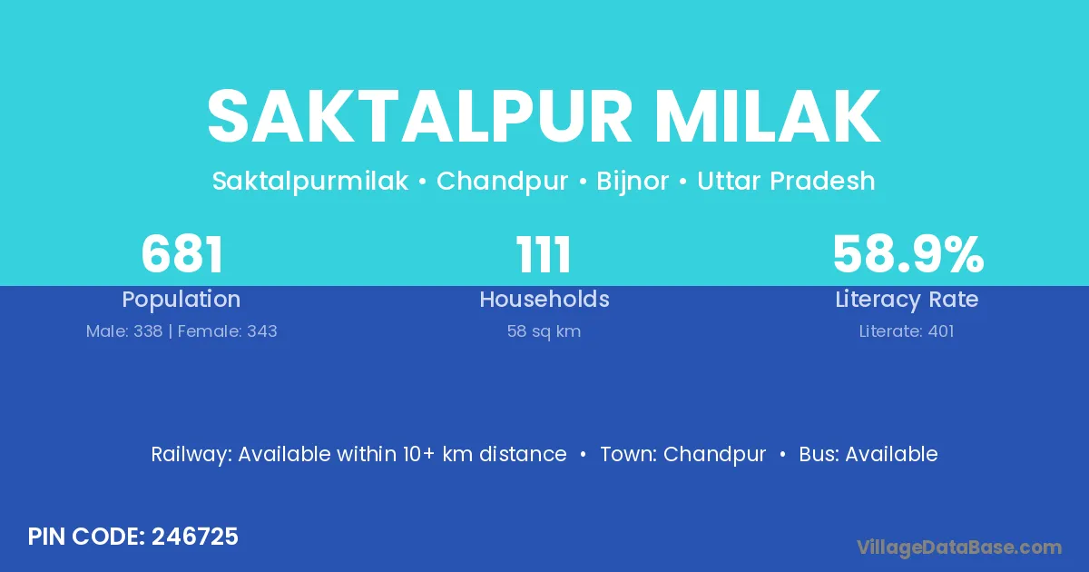 Saktalpur Milak village has a total population of 681 people, of which 338 are males and 343 are females.