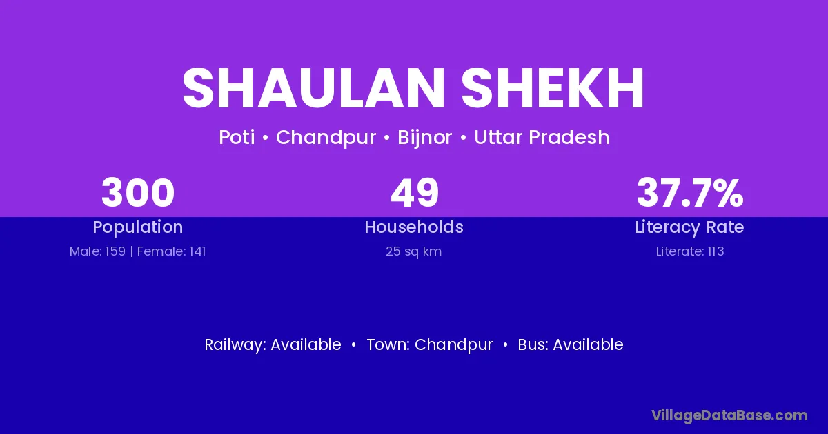 Shaulan Shekh village has a total population of 300 people, of which 159 are males and 141 are females.
