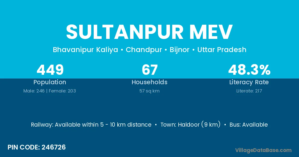 Sultanpur Mev village has a total population of 449 people, of which 246 are males and 203 are females.
