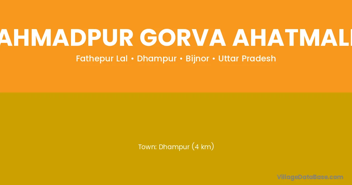 Dhampur (4 km) is the nearest town to Ahmadpur Gorva Ahatmali village for major economic activities and is located approximately 4 km away.