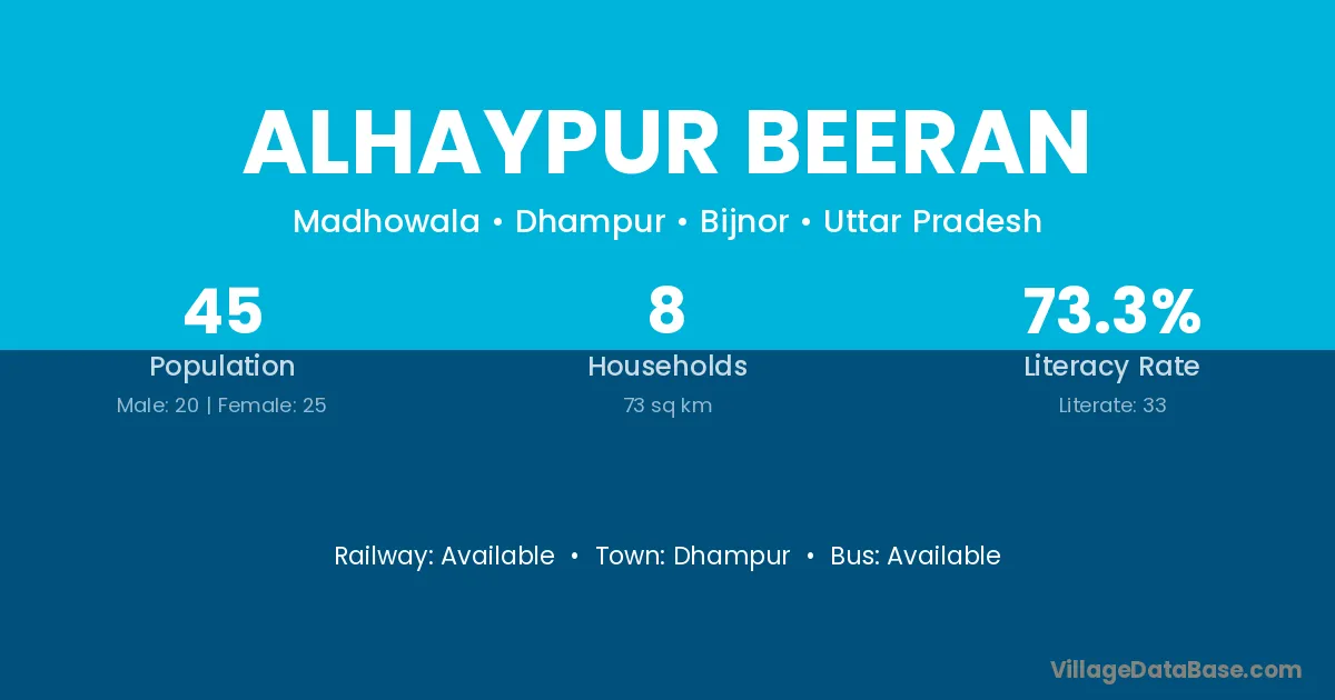 Alhaypur Beeran village has a total population of 45 people, of which 20 are males and 25 are females.