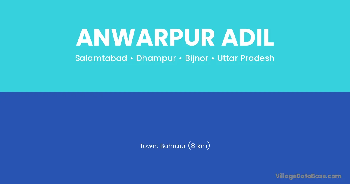 Bahraur (8 km) is the nearest town to Anwarpur Adil village for major economic activities and is located approximately 8 km away.