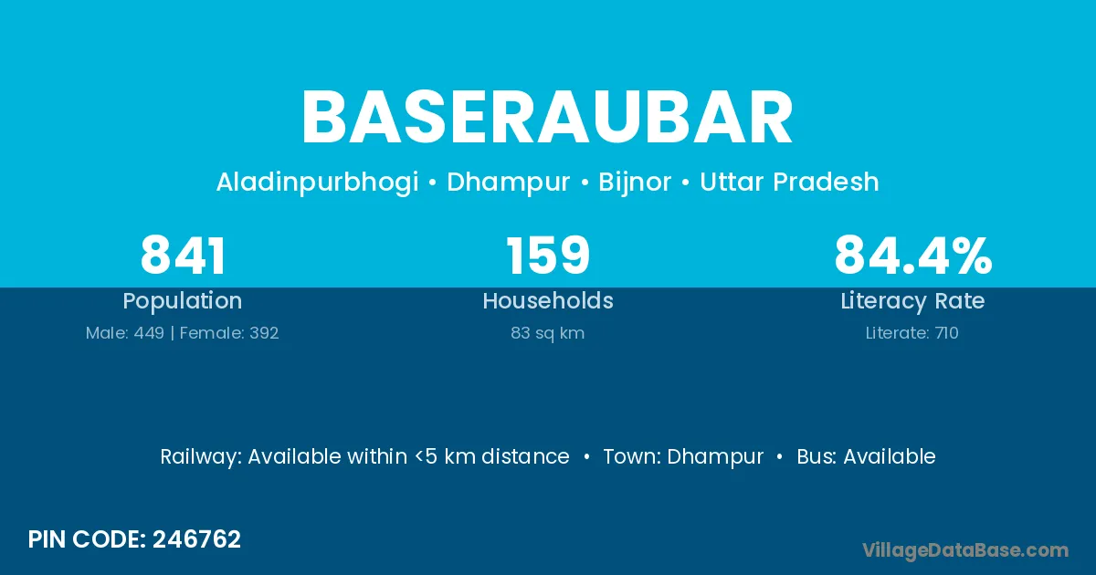 Dhampur is the nearest town to Baseraubar village for major economic activities