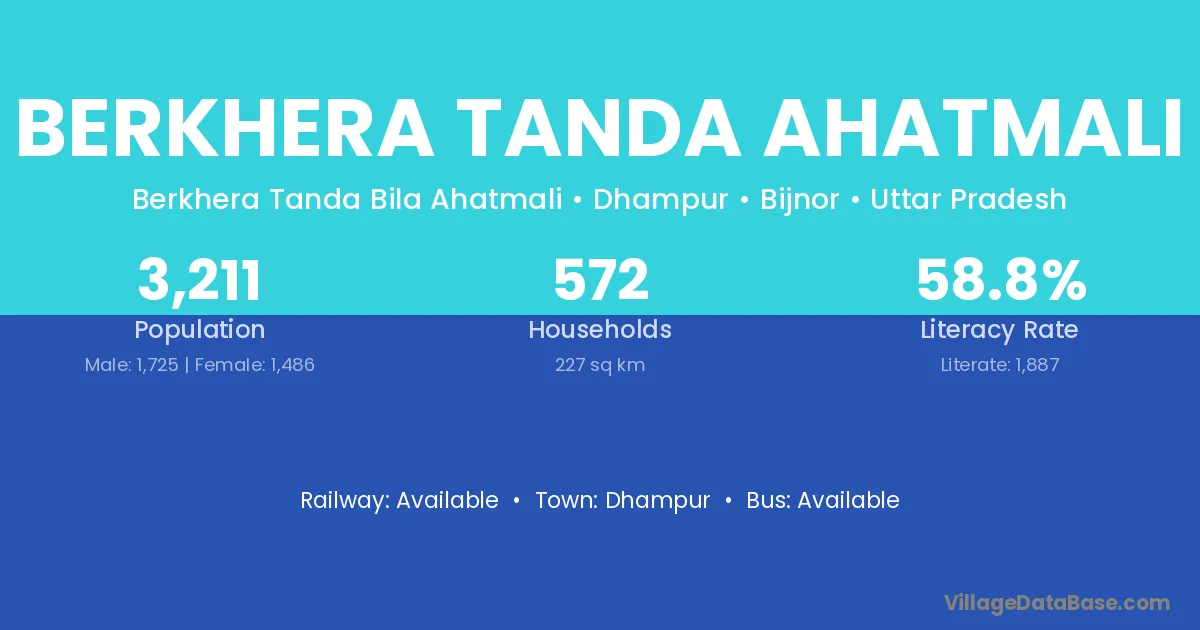 Dhampur is the nearest town to Berkhera Tanda Ahatmali village for major economic activities