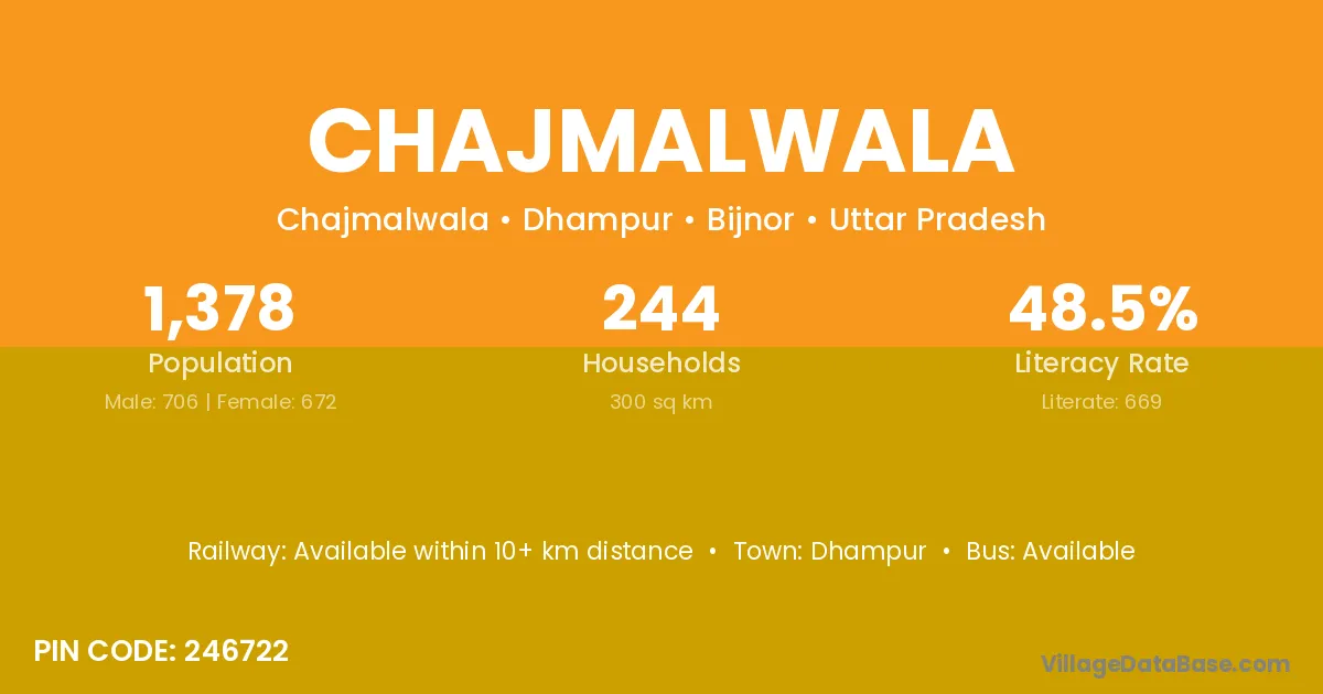 Dhampur is the nearest town to Chajmalwala village for major economic activities