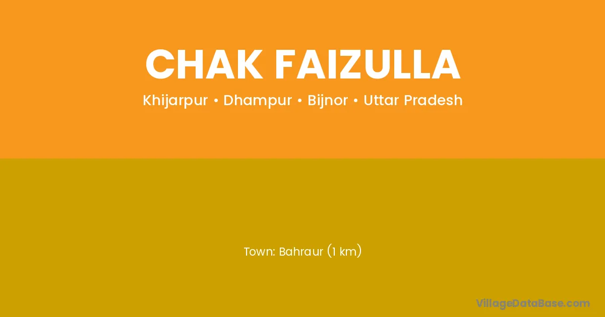 Bahraur (1 km) is the nearest town to Chak Faizulla village for major economic activities and is located approximately 1 km away.