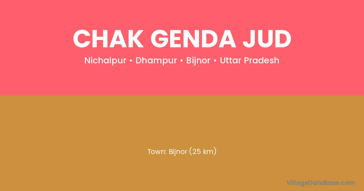 Bijnor (25 km) is the nearest town to Chak Genda Jud village for major economic activities and is located approximately 25 km away.