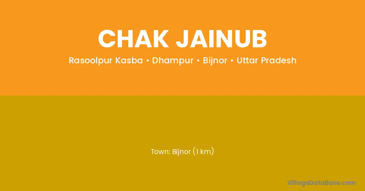 Bijnor (1 km) is the nearest town to Chak Jainub village for major economic activities and is located approximately 1 km away.