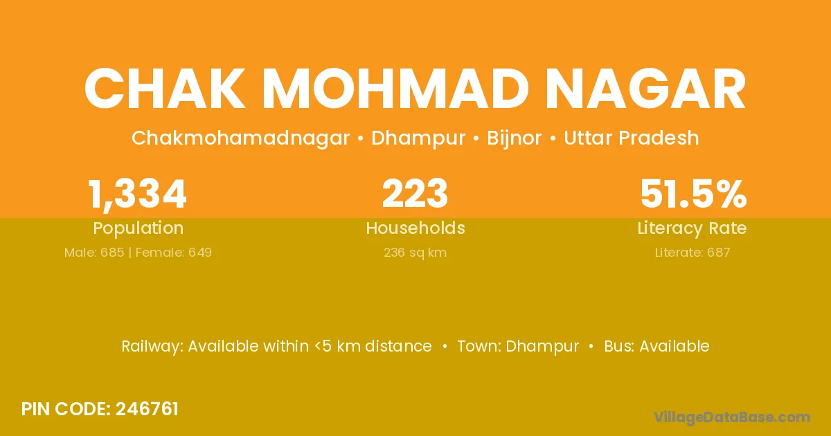Dhampur is the nearest town to Chak Mohmad Nagar village for major economic activities
