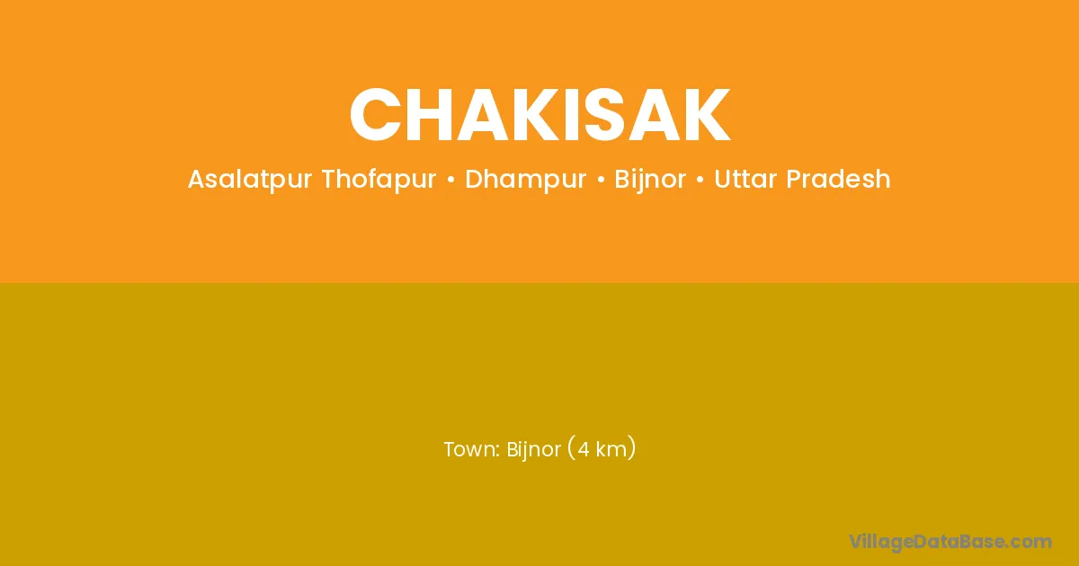 Bijnor (4 km) is the nearest town to Chakisak village for major economic activities and is located approximately 4 km away.