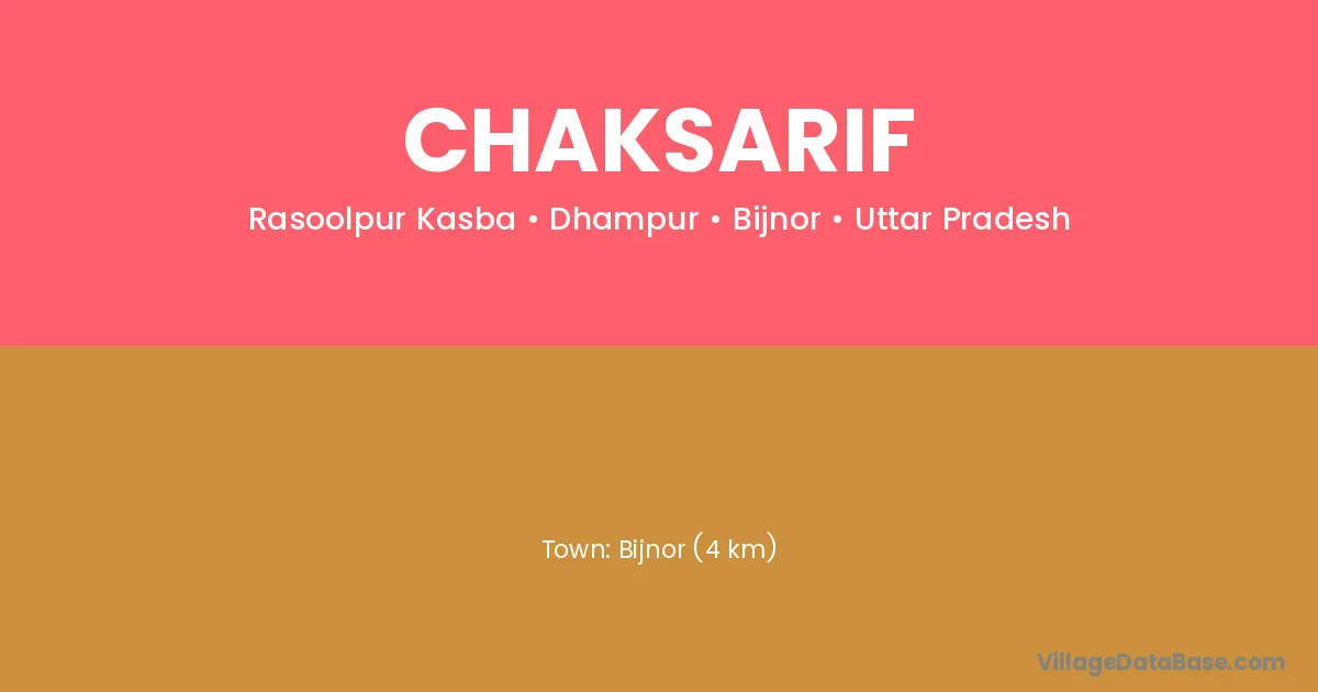 Bijnor (4 km) is the nearest town to Chaksarif village for major economic activities and is located approximately 4 km away.