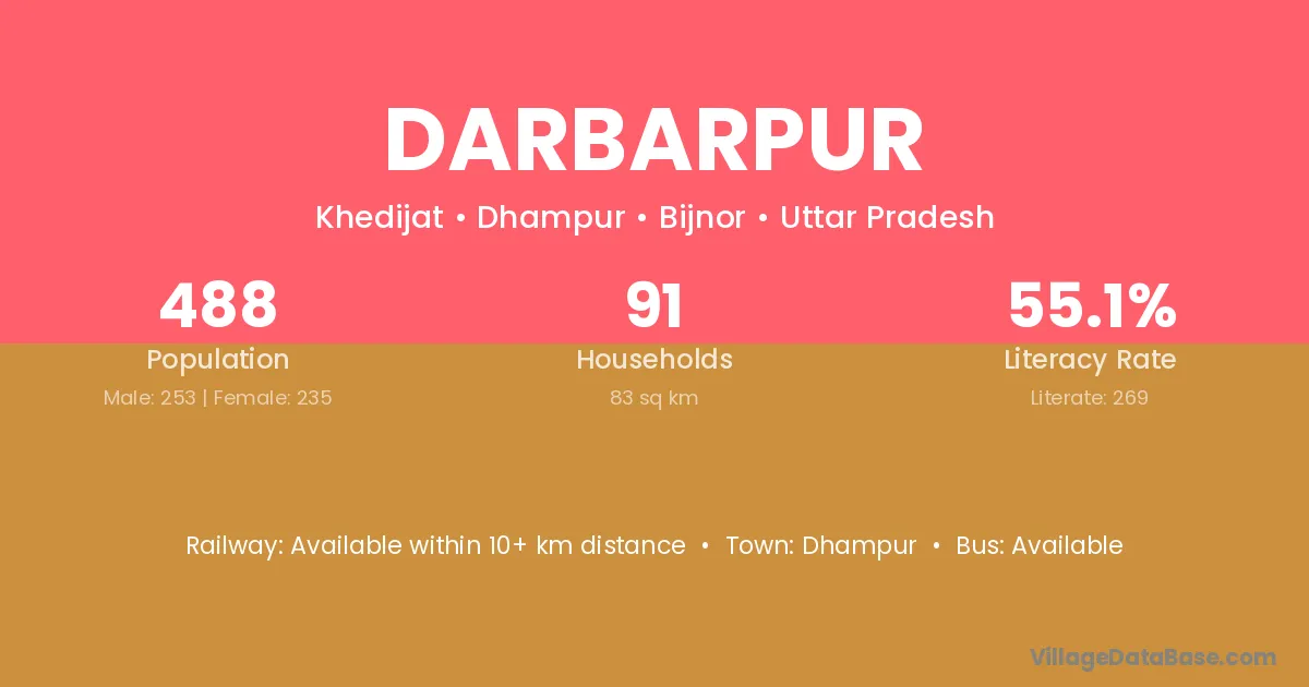 Darbarpur village has a total population of 488 people, of which 253 are males and 235 are females.