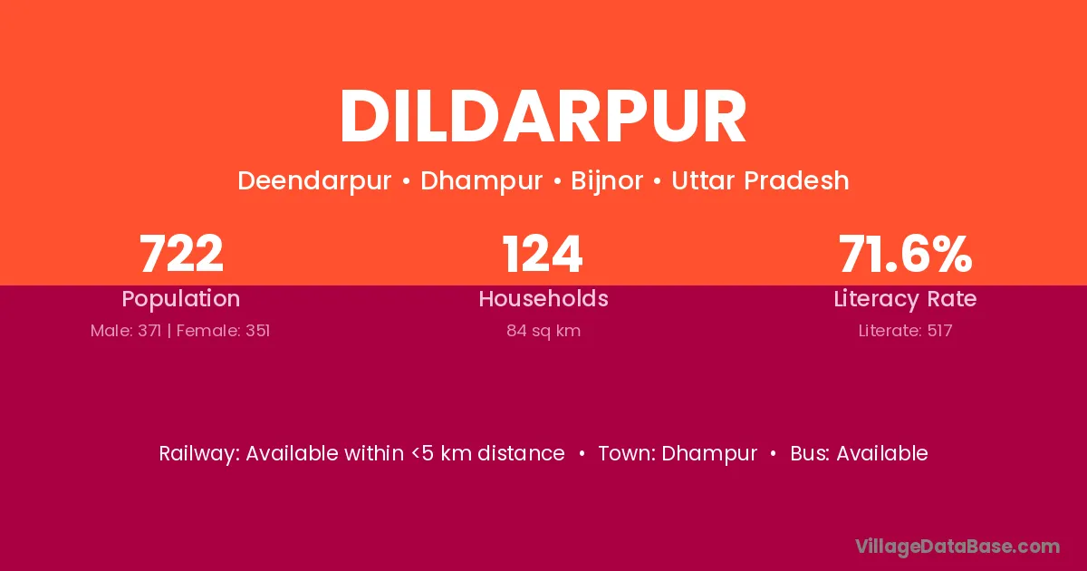 Dildarpur village has a total population of 722 people, of which 371 are males and 351 are females.