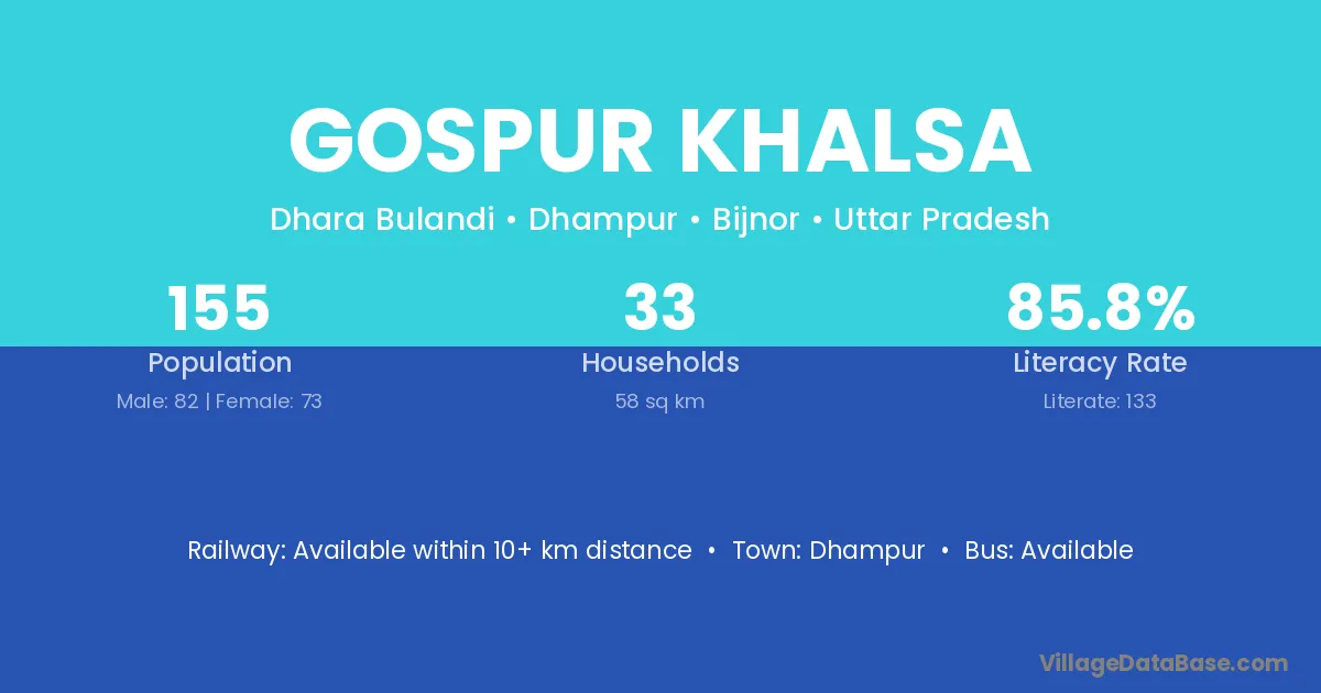 Gospur Khalsa village is located in the Dhampur Tehsil of the Bijnor district in Uttar Pradesh .