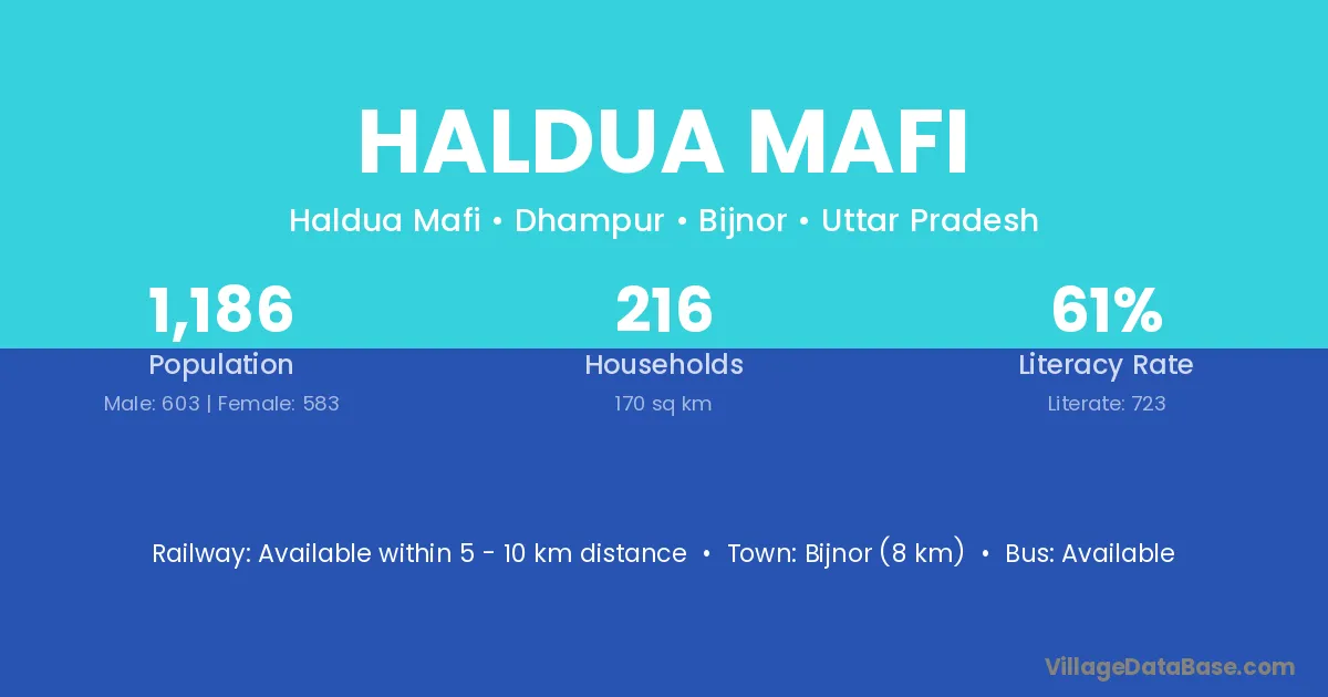 Bijnor (8 km) is the nearest town to Haldua Mafi village for major economic activities and is located approximately 8 km away.