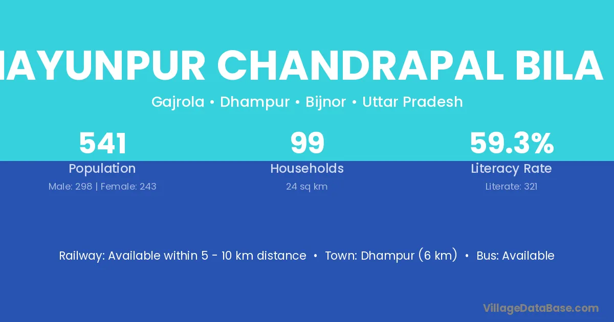 Dhampur (6 km) is the nearest town to Humayunpur Chandrapal Bila Aha village for major economic activities and is located approximately 6 km away.