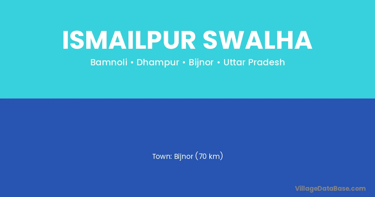 Bijnor (70 km) is the nearest town to Ismailpur Swalha village for major economic activities and is located approximately 70 km away.