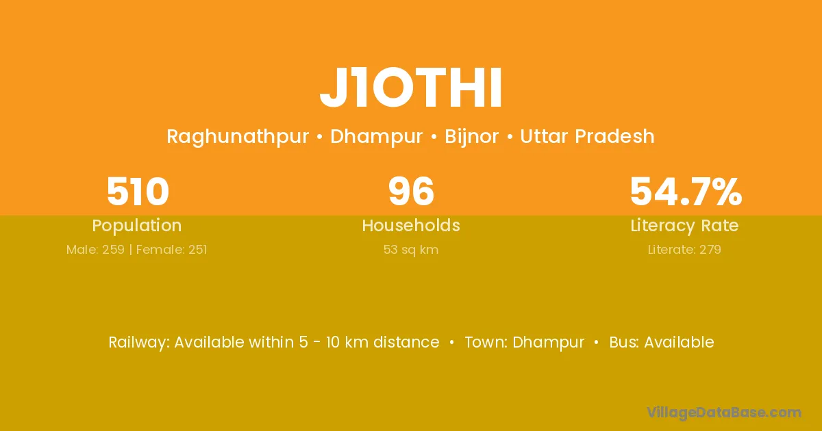 J1othi village has a total population of 510 people, of which 259 are males and 251 are females.