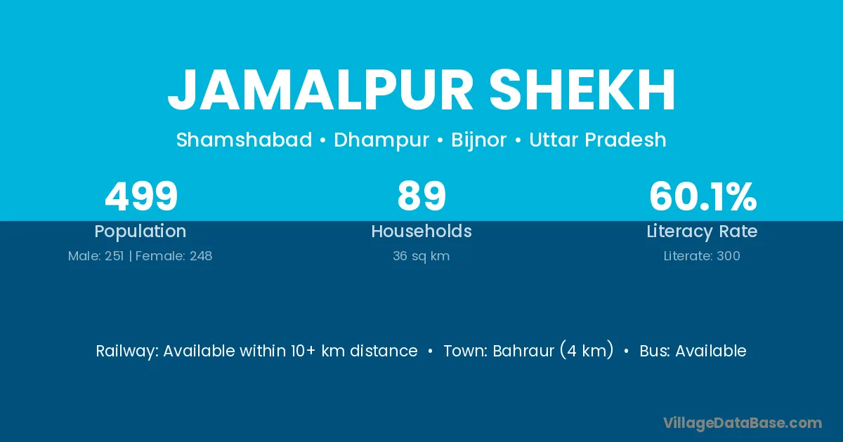 Bahraur (4 km) is the nearest town to Jamalpur Shekh village for major economic activities and is located approximately 4 km away.