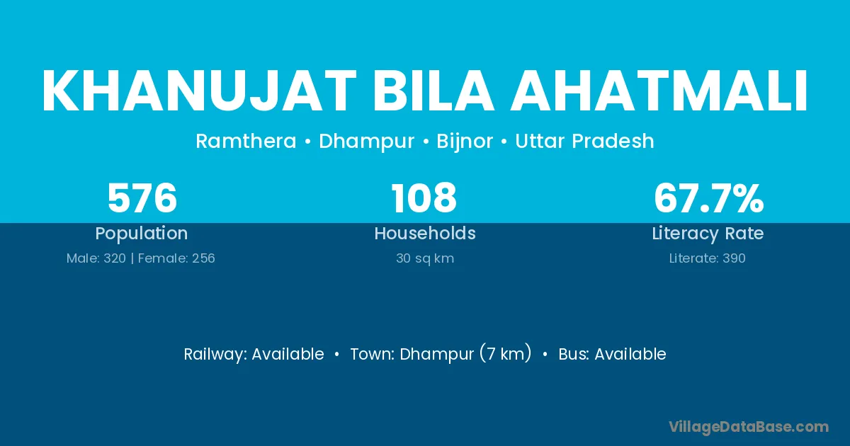 Dhampur (7 km) is the nearest town to Khanujat Bila Ahatmali village for major economic activities and is located approximately 7 km away.