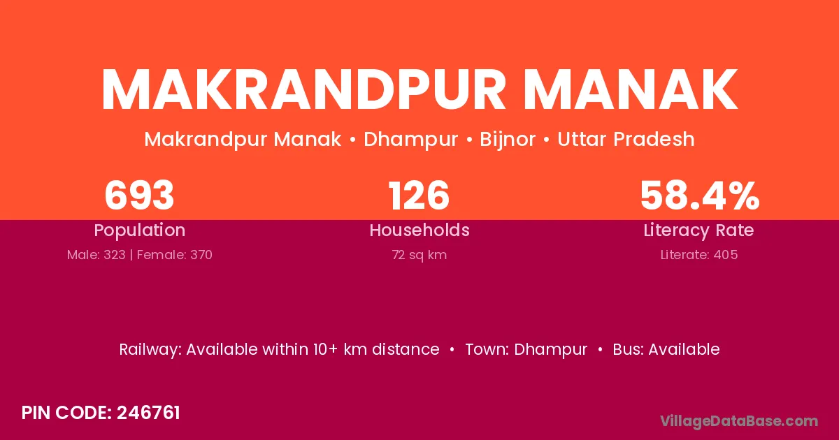 Dhampur is the nearest town to Makrandpur Manak village for major economic activities
