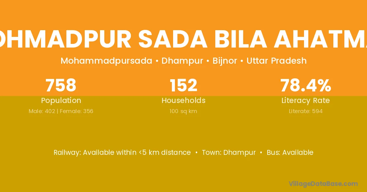 Dhampur is the nearest town to Mohmadpur Sada Bila Ahatmali village for major economic activities