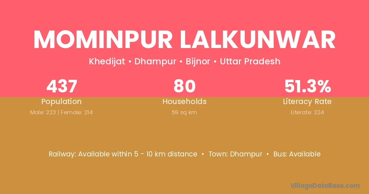 Mominpur Lalkunwar village has a total population of 437 people, of which 223 are males and 214 are females.