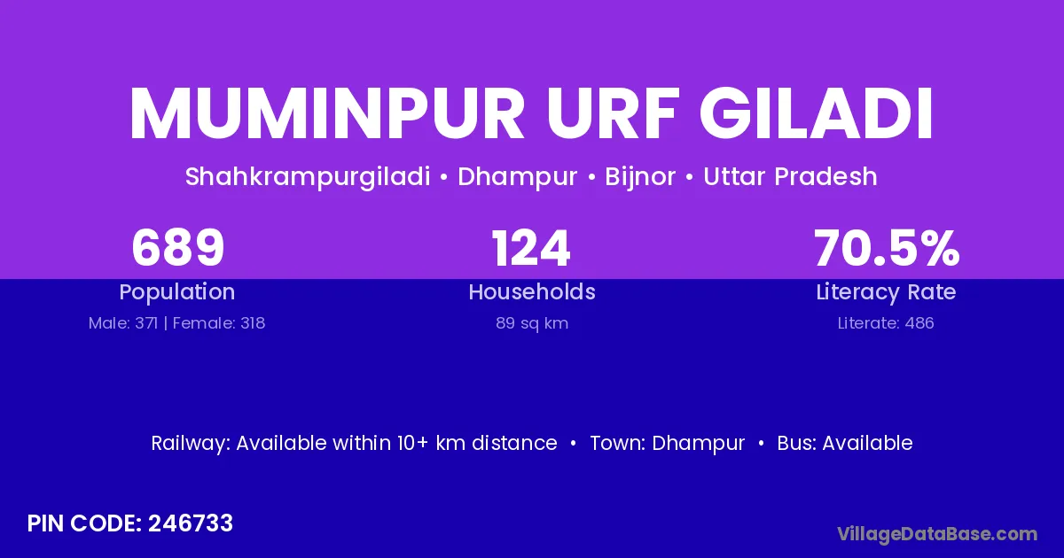 Muminpur Urf Giladi village has a total population of 689 people, of which 371 are males and 318 are females.
